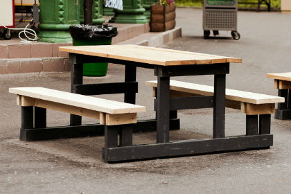 Аренда сборного стола из сосны для фудкортов ярмарок и базаров. Конструкция деревянная, сборная. Монтаж/демонтаж занимает всего 7-10 минут.